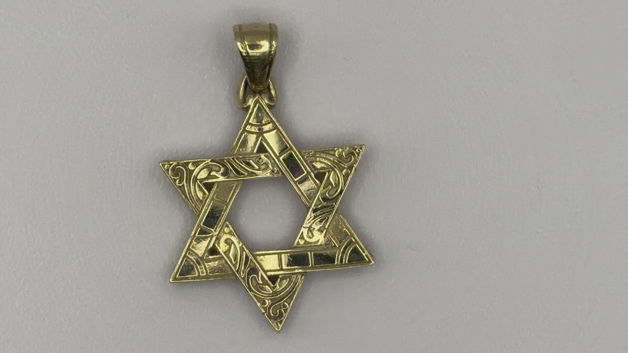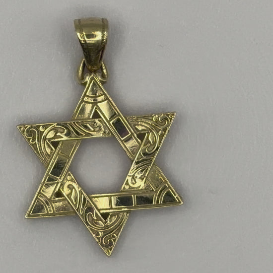 10kt Solid Yellow Gold Star of David Magen Script Engraved Pendant w/ attached Tapered Bail